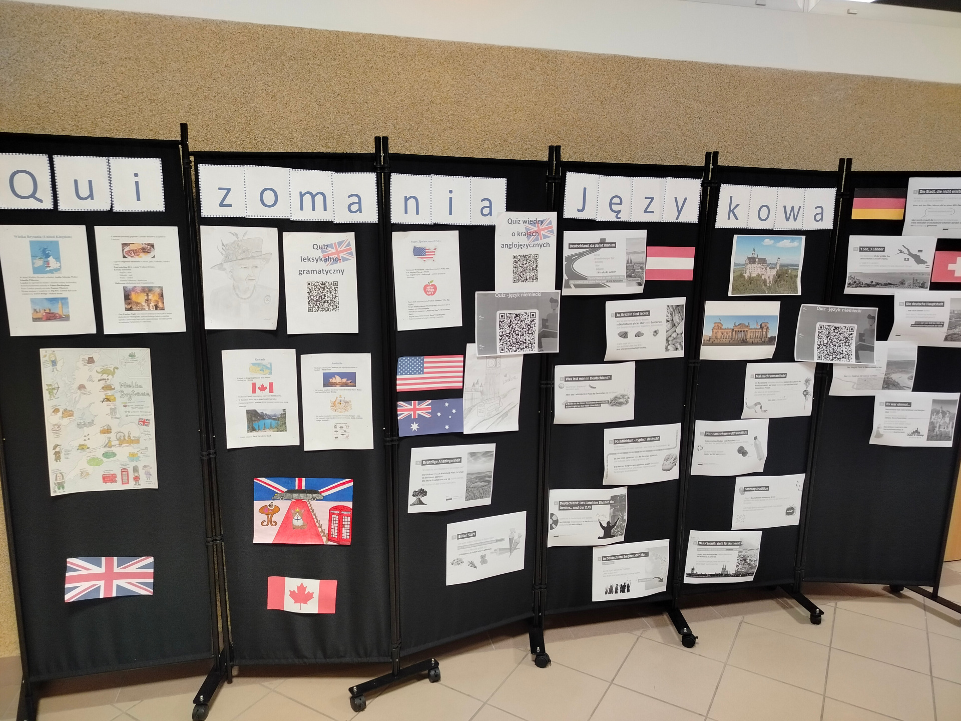 Dodatkowym elementem wydarzenia była ścianka informacyjna, na której uczniowie mogli znaleźć ciekawostki, flagi, najważniejsze informacje oraz interesujące fakty dotyczące krajów anglojęzycznych i niemieckojęzycznych. Organizatorami wydarzenia były: D. Broda, A. Jedrycha i A. Misiak-Golonka.