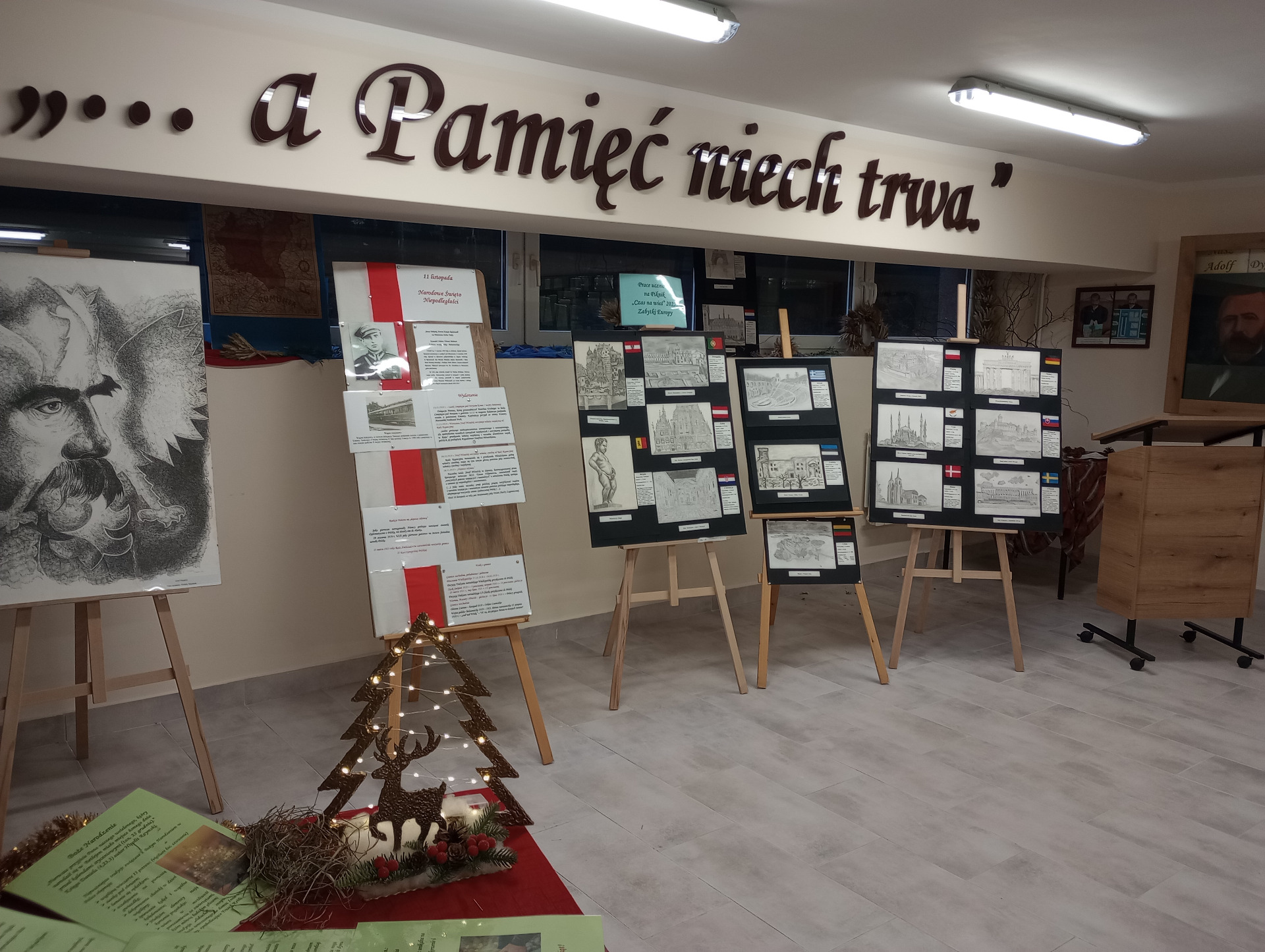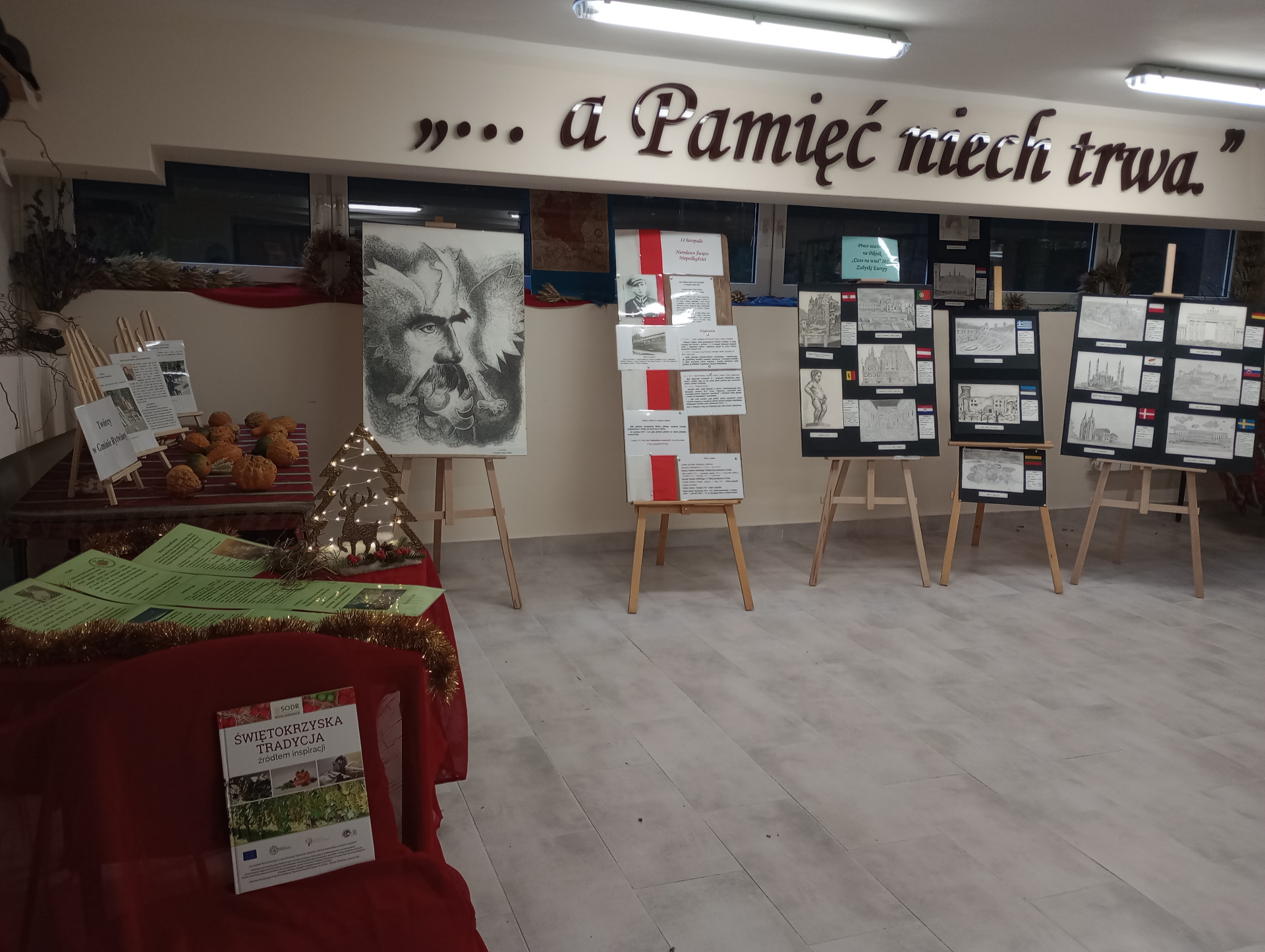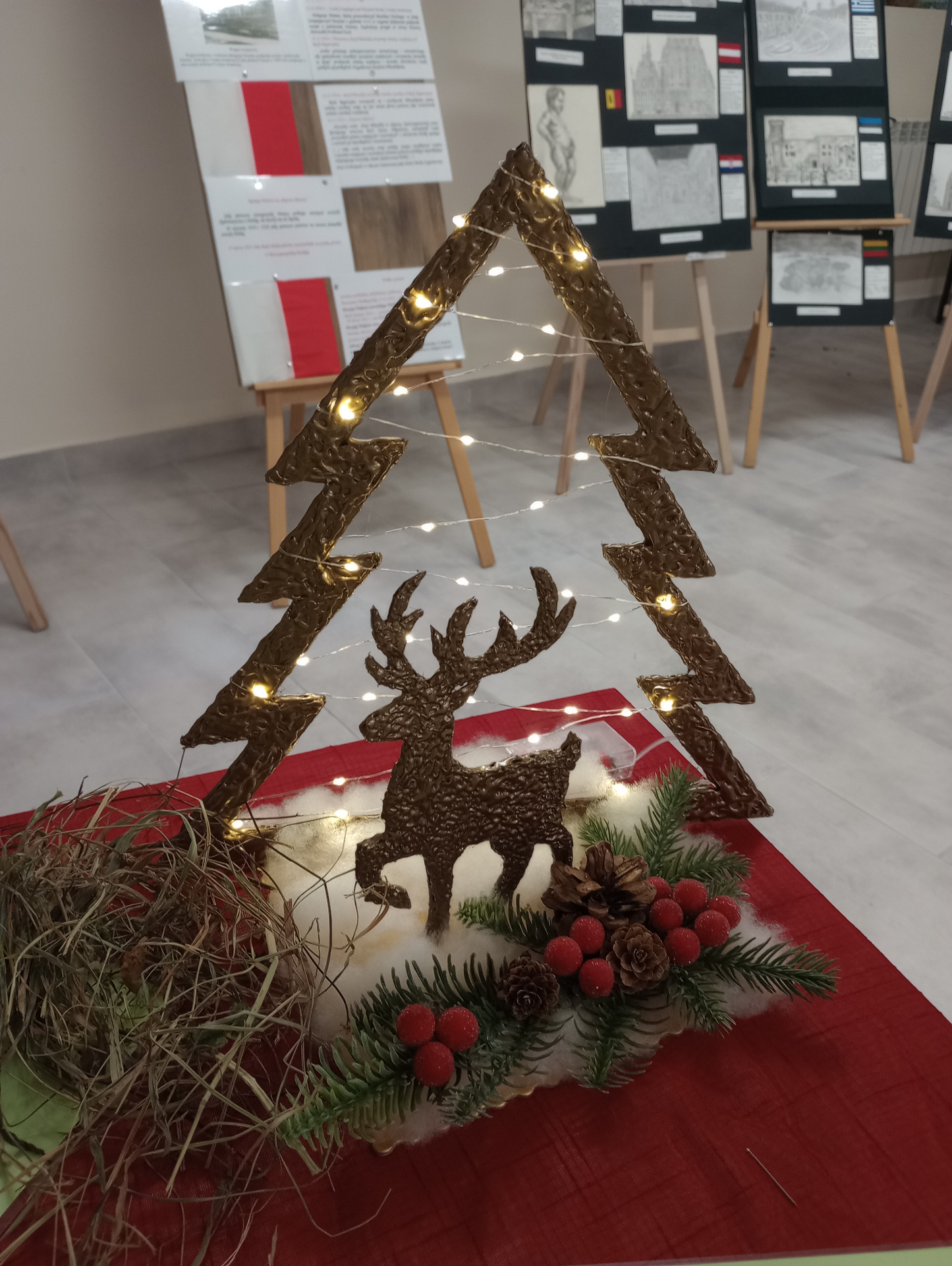 Jako społeczność szkolna kultywujemy tradycje przodków. W Izbie Pamięci znajdziemy świąteczny akcent, który opowiada o historii Świąt Bożego Narodzenia, wigilijnych potrawach i zwyczajach, symbolice łamania się opłatkiem przed uroczystą wieczerzą. Wyjaśnia znaczenie pasterki i pustego miejsca przy stole. Jest też pachnące sianko i renifer, który ciągnie sanie z prezentami.